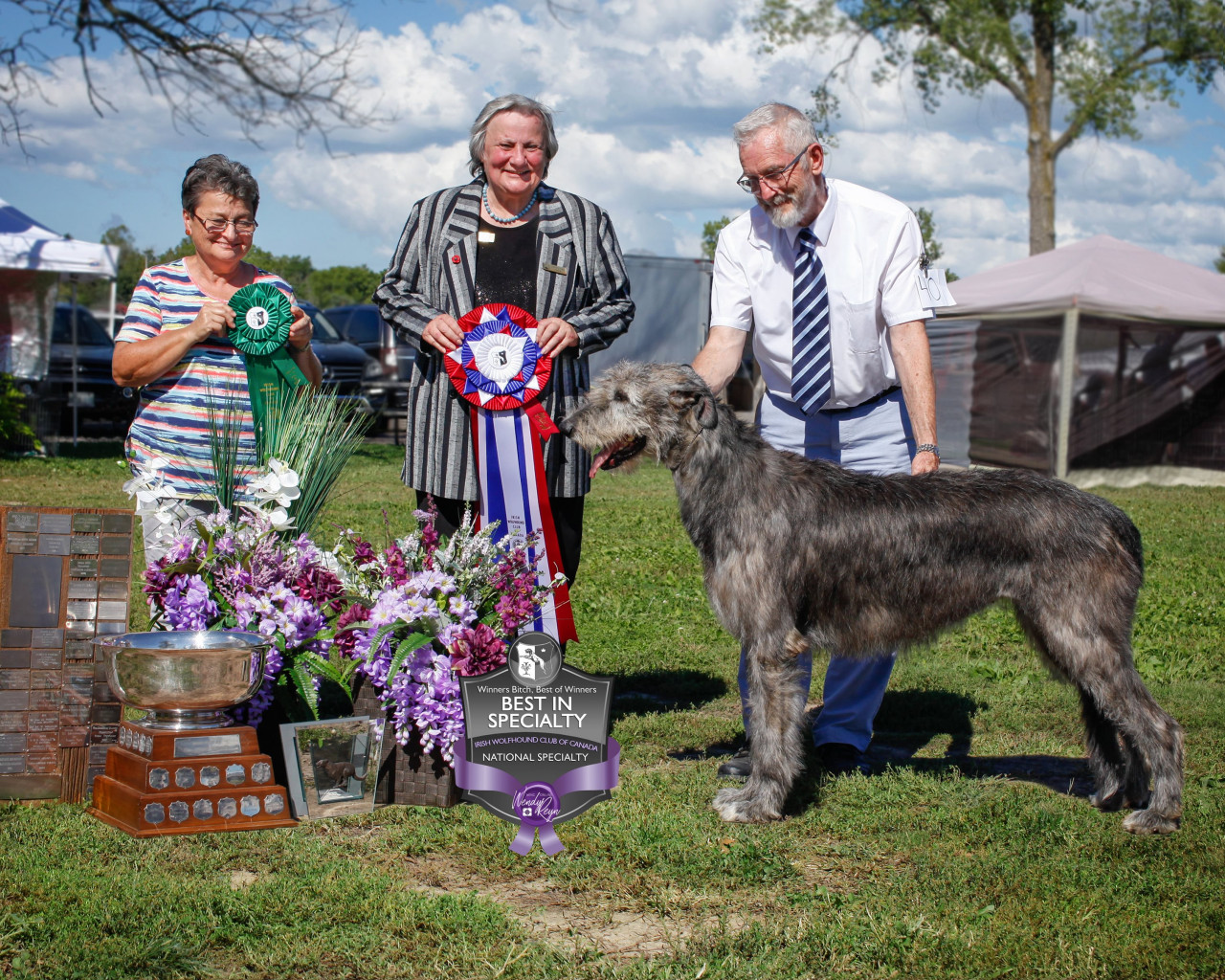 It was the Ontario Regional Specialty. At this event, there were a good number of dogs from Canada and the United States, judged by the Hon James G Phinizy (USA). He is an expert judge of the breed who had previously judged wolfhounds in prestigious events like Westminster, Albany, Louisville, he also judged several Specialties, IWANE in New England, The Irish Wolfhound Association of the Delaware Valley, Rocky Mountain Irish Wolfhound Association, The Western Washington Hound Association and Locust Grove.